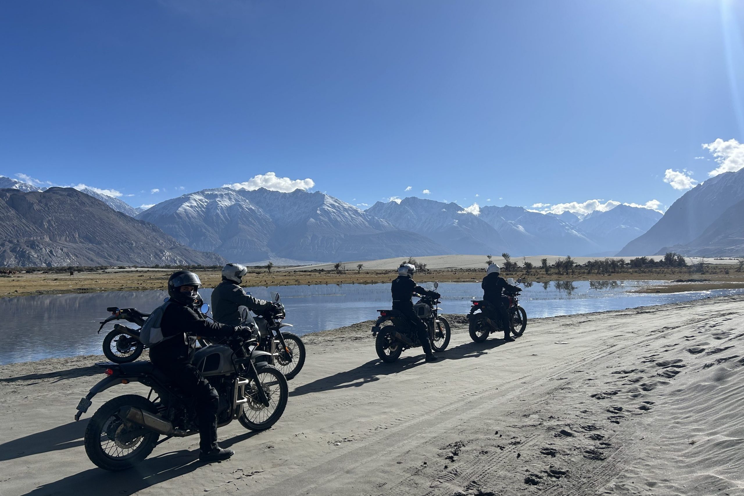 Au guidon d’une Royal Enfield Himalayan 410 CC, vous traverserez les terres sauvages de l’extrême nord de l’Inde sur les traces des anciens caravaniers de la route de la Soie. Du mythique col de Khardung La à 5 400 mètres d’altitude aux rives paisibles du lac Pangong, en passant par les vastes plateaux du Changthang et les rencontres avec les nomades du Ladakh, chaque journée vous réserve son lot de découvertes et d’émotions fortes.